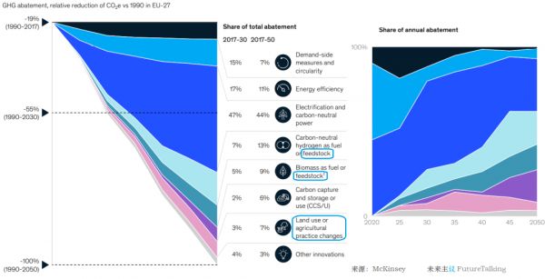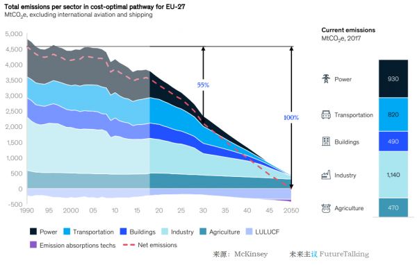 欧洲27国2050净零排放目标各行业实现路径