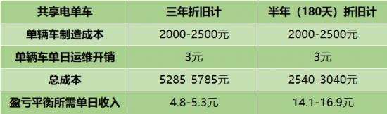 在这项测算中,是以三年报废,一年365天计,但实际上,在冬季因为气温低,选择骑行电单车的用户会大量减少,同时电池的续航更短。在适宜骑行的季节,共享电单车需要更高的翻台率才能维持盈亏平衡。