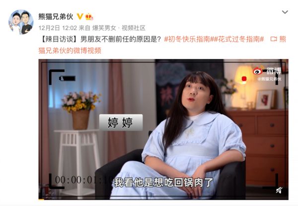 @童瓜 和@向夏 是一对从记者转行到搞笑幽默领域的好兄弟组合,2018年末开始搭伙至今,两人合作运营的@熊猫兄弟伙 已经在微博上积累了195万粉丝,以“斗嘴吵架”为乐的《辣目访谈》有着一大批忠实拥趸。