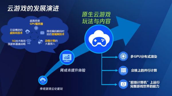 最后,我想谈谈技术之势,跟大家分享一些我们热点和未来的思考。刚才敖副理事长有提到云游戏,我们觉得云游戏分为三个阶段,第一个阶段是可以玩,也就是把传统游戏云化之后,体验和画质不变;第二阶段是降低成本的同时,还能再提升游戏体验;第三个阶段,是通过多机多核的计算能力,将很复杂的场景能够计算出来,让那些原生的云游戏玩法呈现出来。