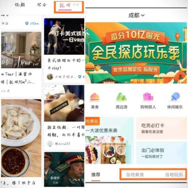 今年初,B站内测同城“吃喝玩乐”版块;7月,快手新增“本地生活”入口,主推美食、旅游类达人;8月,抖音推出“生活服务场景接入方案”,对接供应链招商,将美团外链替换成抖音商家小程序。