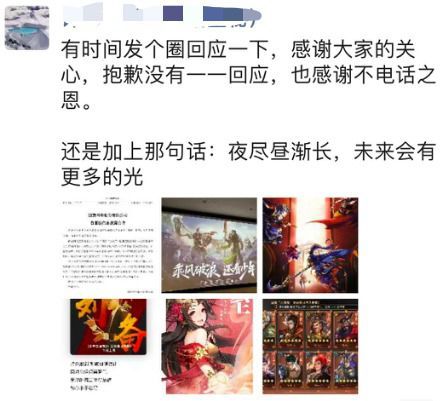 早先时间,游族网络总裁陈芳在朋友圈回应表示:“没内斗,人都在,流言才是毒药,行走江湖靠的都是兄弟,未经确认的流言希望大家不要传播。”