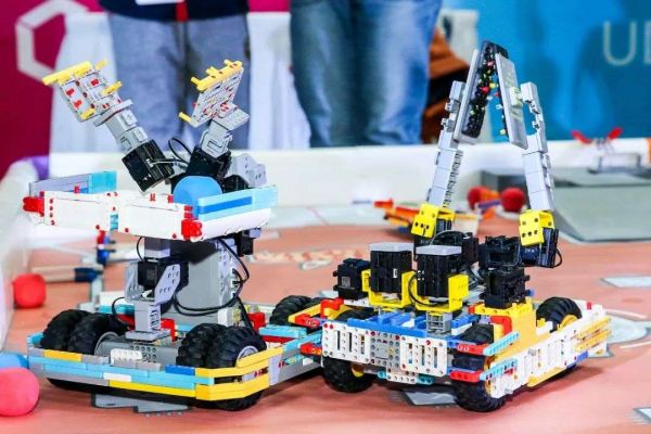 「3、2、1,开始!」随着裁判一声令下,赛场两侧的机器人战车飞快冲出,抢夺「火星战场」上的各项资源。而站在机器人背后的,则是手持手机、平板的小朋友们。赛场上的机器人战车,就是由他们亲手搭建和操控。