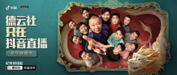 12月18日官宣德云社将在抖音独家直播龙字科招生后,在包括在抖音官方账号、合作账号、直播页推荐banner和“消息”tab下滑页都增加了对德云社直播信息的露出,不少抖音用户打开App后看到的第一条推荐视频便是德云社直播预热,搜索德云社或相关演员便会显示直播及活动入口。