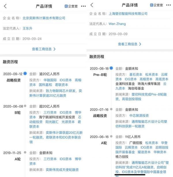 ▲奕斯伟计算(左)、壁仞科技(右)融资情况(来源:企查查)