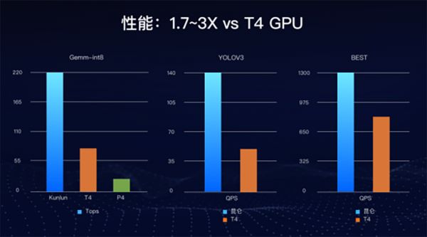 ▲百度昆仑1芯片与英伟达T4 GPU性能对比