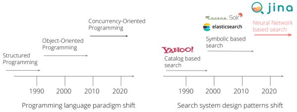 肖涵指出,做深度学习搜索的难点在于如何让更多的用户接受这个通用编程范式。这是一件野心很大的事情,因此目前并没有很多公司敢于尝试,而他本人在深度学习搜索和开源领域的丰富经验和知名度将成为优势。但同时正是这种难度和创始团队的优势为Jina AI带来了很高的估值。行业壁垒高导致同类公司少,但同时也意味着能够进入这个赛道的对手都很强劲,如互联网巨头Google,Facebook,微软和Elasticsearch。这些互联网巨头的内部都会对深度学习搜索有所涉猎。对比搜索巨头Elastic肖涵表示,Elasticsearch主要针对文本搜索,是属于文本内容时代的杰出产物。Elasticsearch代表了文本搜索时代的最佳实践,而Jina则代表了在多模态时代下的搜索范式和最佳实践。每一个时代都有符合当下的范式,正如在计算机程序设计从面向过程范式迈向面向对象的范式;随着搜索媒介的丰富,这种搜领域变迁也正在发生。新的设计范式意味着更清晰简洁的工程架构,业务逻辑和更强的可维护性。对于那些需要从0到1去开发多媒体搜索AI的开发者和公司,Jina能够帮助节省大量的时间。