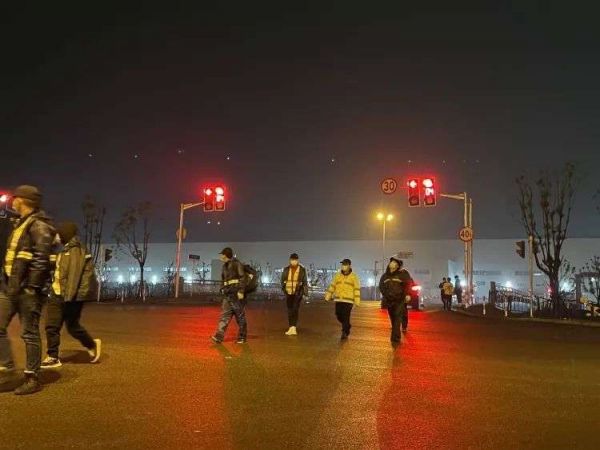 清晨七点,上早班的特斯拉员工(图片来源:品玩)