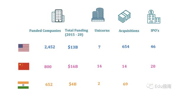EdTech投融资-美国,中国和印度(2015–2020)