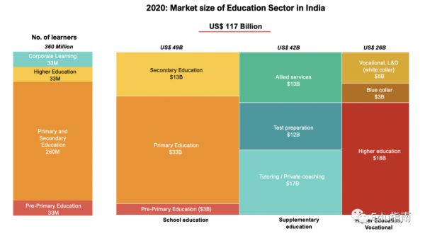 市场大,将是一个很好的基础,来讨论为什么EdTech取得了突飞猛进的发展,并将继续成为印度关键行业技术颠覆方向。