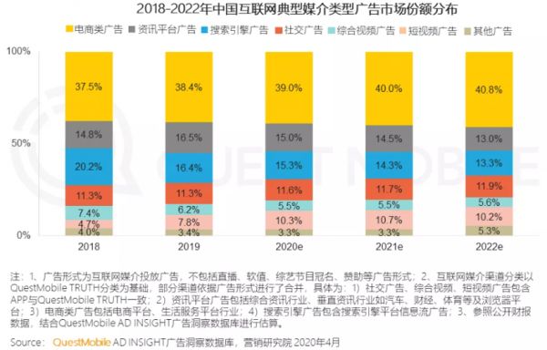 以短视频为主的平台方面,快手招股书显示,今年1-6月快手在线营销业务收入达72亿元,较去年同期增长222.5%。另据未经证实的路透社消息,字节跳动2020年广告营收有望达到1800亿元。