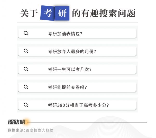 在茫茫的考研相关搜索里,我们还找了一些有趣的问题。备考的长途之旅,总要搜点未解答的疑惑,要么打发时间,要么聊以慰藉。