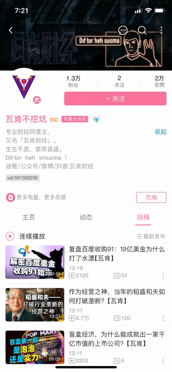 选择泛财经,是因为整体的团队背景是财经媒体人,当时关注的方向也是财经、互联网、商业这块。2016年我离职,之后做了几年To C的视频、短视频内容。直到今年B站出圈,财经类内容也有了受众,加上我自己也很感兴趣,所以时隔四年后做了现在的瓦肯财经。