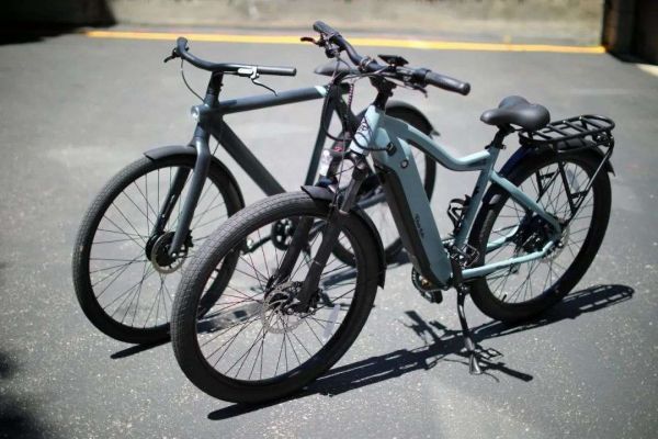 图:Ride1Up电动自行车(右)和VanMoof自行车(左)