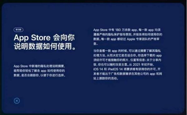 不仅如此,根据苹果方面目前的说法,到2021年初,他们还准备实施更严格,专门针对“跟踪广告”的限制措施。要求所有可能将用户数据卖给广告商的应用,都必须提供“一键关闭”选项,即只要用户不同意分享他们的行为数据,软件就不能将这些数据提供给广告商,或是用于自己的广告业务。