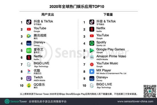 2020年全球热门娱乐应用 抖音及TikTok获双榜冠军