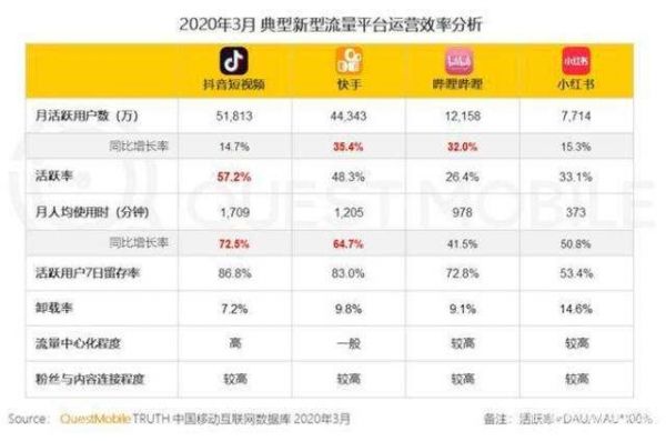 据QuestMobile统计数据,2020年3月抖音月活跃用户数达到5.18亿,同比增长14.7%,月人均使用时长为1709分钟,同比增长72.5%。