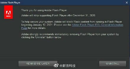微软已经确认Windows 10的下一次更新将自动删除Flash Player。这也意味着Flash Player即将迎来最后的谢幕,目前Adobe公司已经发布了新的弹窗提醒,提醒用户永久删除该软件。Adobe表示,安全是做出这个决定的主要原因,并确认即使不手动删除播放器,Flash内容也会在1月份自动停止工作。