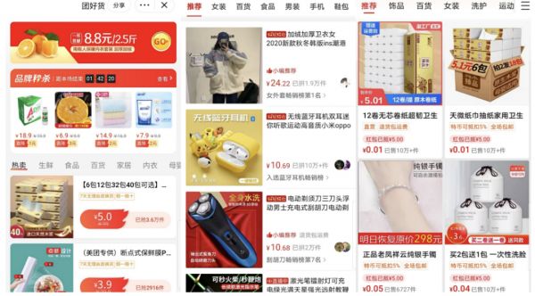 (从左到右依次为:团好货、拼多多、淘宝特价版)