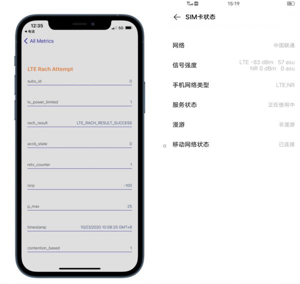 我们可以看到,同样是高通X55基带,iPhone 12 Pro信号属于一般,iQOO 5的信号则是极好。