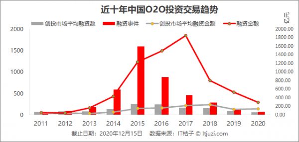 O2O 投资交易的数量和金额都曾远高于创投市场各领域的平均值。