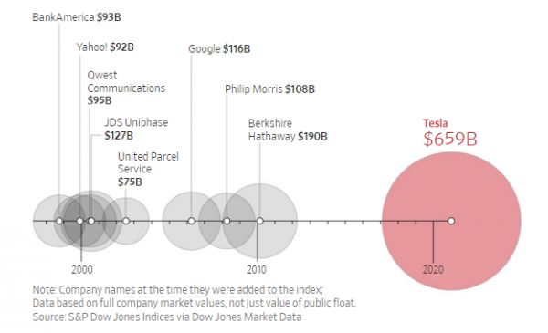 特斯拉的市值是今年其他所有加入标普500指数15家公司总和的两倍以上。