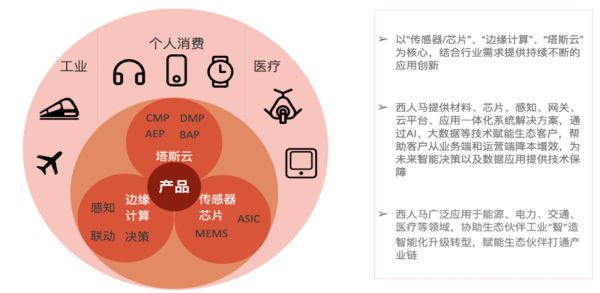 「西人马」是一家依托于IDM(芯片设计与制造和封测)模式的芯片服务商,采用AS9100D航天航空质量标准,目前芯片类型主要有MEMS芯片和ASIC等系列芯片,可覆盖高端加速度计、压力、红外、气体、金属颗粒、信号处理等产品。为客户提供端-边-管-云-用,从感知层芯片、传感器,到边缘计算和云的一体化解决方案。应用场景涵盖航空航天、能源、交通、工业、消费电子等领域。目前服务的标杆客户有空客、中⻋集团、中航发、中国移动、九安医疗、德赛集团等。