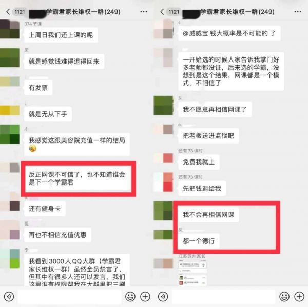 “有些家长重新加回了我,我只能尽量帮他们想办法,但我又何尝不是受害者?以后的话,会去更大的平台或者干脆离开这个行业。”学霸君班主任张粒吐槽道。