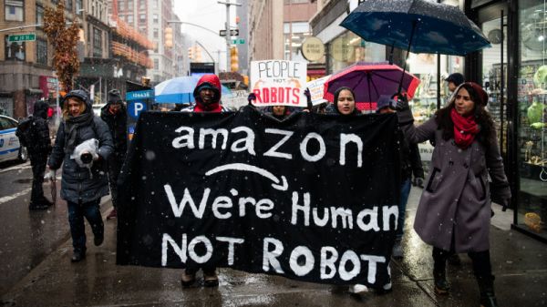 在11月的黑色星期五假期,全球各地亚马逊仓库的员工发起了一系列抗议罢工活动,呼吁亚马逊重视工作场地的防护措施,同时改善员工的工作条件。其中,还有一些人甚至在贝佐斯位于纽约的豪宅楼下发起了抗议。
