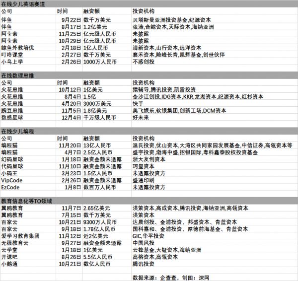 “今年在线教育行业融资的马太效应越来越明显,钱都流向了细分赛道的头部公司,能留在牌桌上的创业公司只剩三类,一是拿到了融资,二是卖身成功,抱到了大腿,三是选择战略收缩或者蛰伏求生的尾部企业”,伴鱼CMO翟磊对《深网》表示。