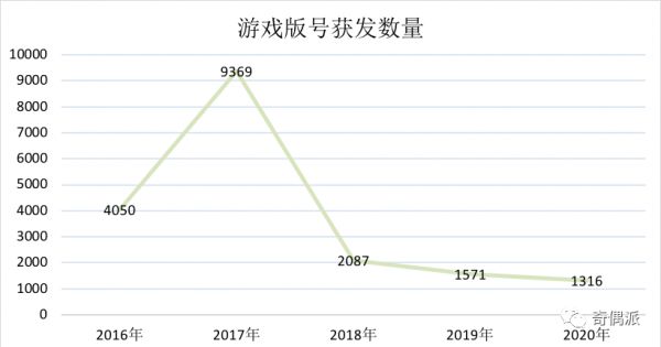 奇偶派数据统计显示,2020年获发游戏版号的游戏数量为1316款,2019年为1571款,2018年高达2087款,2017年则是惊人的9369款,即使2016年也有4050款。随着游戏版号数量的减少,游戏用户和收入加速向头部游戏企业以及精品游戏集中。