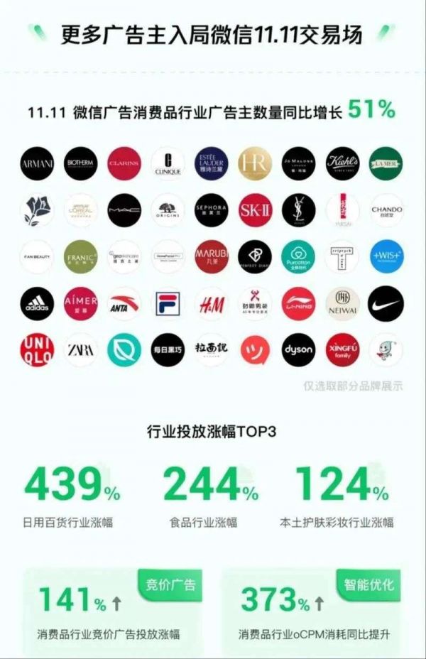 也正是因此,互联网广告大盘上半年被疫情拖累,但作为腾讯广告支柱的微信社交广告却以21%的增速逆势上涨。尤其在今年双11,微信切到了一大块电商流量蛋糕,广告主数量增长51%。