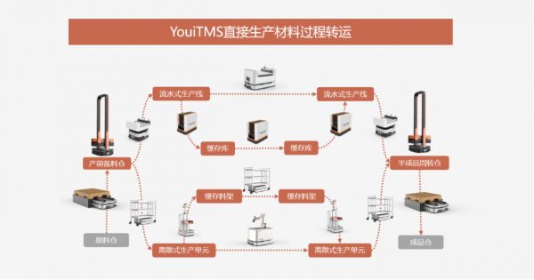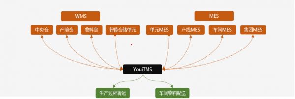 优艾智合拥有专门为场内机器人物流管控打造的YouiTMS系统。其构成连接离散MES系统之间、场内MES系统与WMS系统的之间物流信息的中间桥梁。