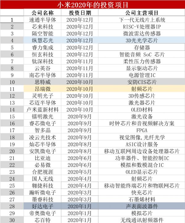 华为和小米的2020芯片投资版图