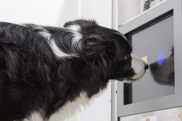 维也纳兽医大学(University of Veterinary Medicine)的一只边境牧羊犬正在参加一项触屏实验。该实验发现,年龄较大的狗能够从中受益,就像数独和其他大脑锻炼游戏有助于人类保持思维敏捷一样。图片来源:Alex Halada / 法新社 - Getty