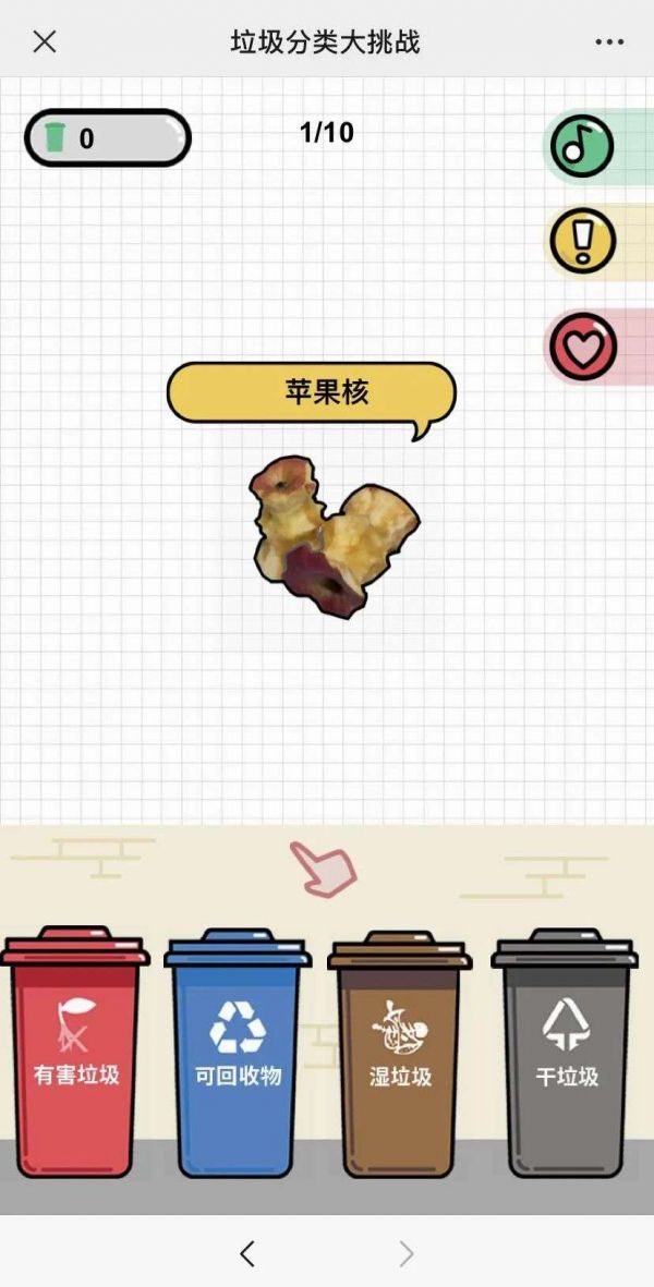 2019年一款贴近热点的刷屏级创意H5《垃圾分类大挑战》画面截图