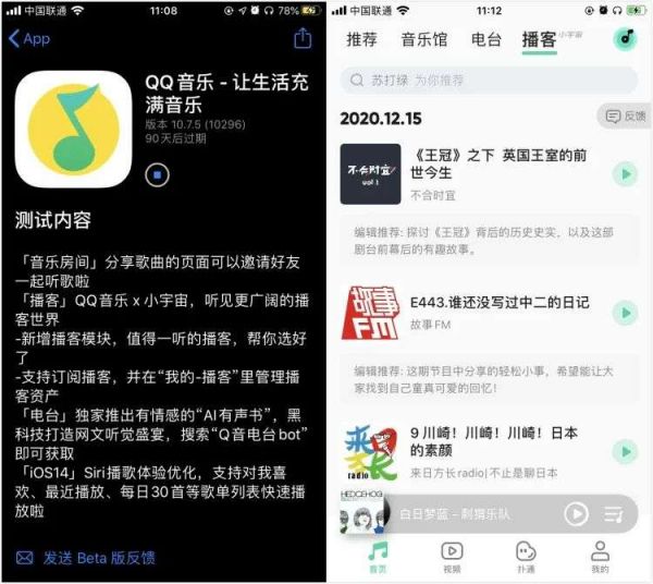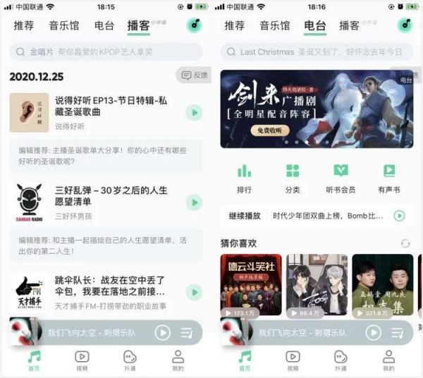QQ音乐“播客”页与“电台”页对比