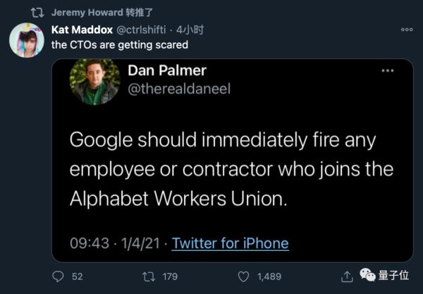如来自Tellerapi的CTO Dan Palmer,就认为谷歌应该立即解雇加入工会的这些员工。
