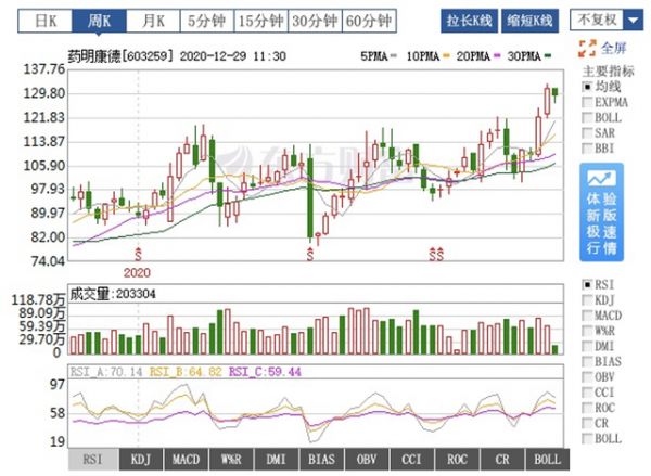 1月5日,药明康德A股股价创下历史新高,盘中最高价143.8元/股,收盘价134.72元/股,市值达3287.16亿。