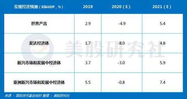 国际货币基金组织在最新的《世界经济展望》中预测2020年全球实际GDP增速为-4.9%,2021年实际GDP增速则为5.4%。