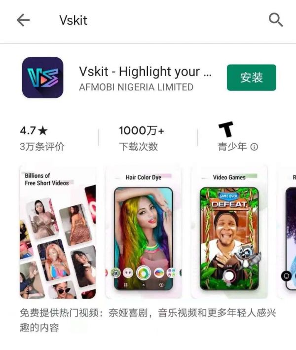上线于2018年4月的Vskit,只用时7个月,就达到了1000万以上的用户规模和200万的视频量,成为非洲排名第一的短视频App。