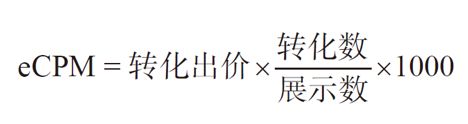 在信息流广告里,常把点击率叫作CTR,转化率叫作CVR,转化率可以指点击到转化,也可以指展示到转化,没有特殊说明的话一般指点击到转化。因此,计算eCPM的公式常写作:eCPM=转化出价×CTR×CVR×1000。