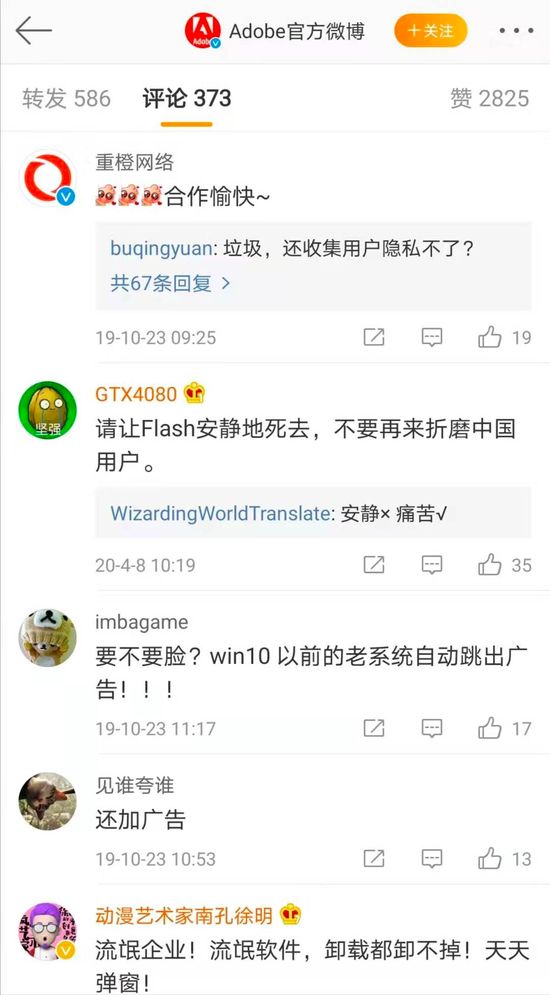 为此,当Adobe在新浪微博上表示,之后将会继续与重橙网络合作并支持其在中国大陆地区对Flash Player的独家发行与维护,相当于一个“特供版”,但从评论来看,很多用户并不买单。而且这个特供版是否会有安全补丁的推送也值得考虑。2019年,亚信安全就曾截获Paradise勒索病毒最新变种文件,发现是通过Flash漏洞传播,目前Flash仍然是各大黑客瞄准的目标。