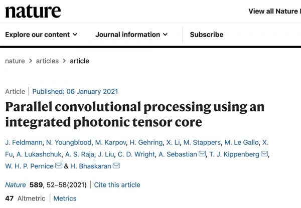 这不,2021年刚开年,顶级科学期刊《Nature》上就在一天之内连发两篇利用光学特性加速AI处理的光子芯片论文。