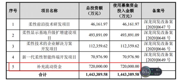 本次IPO,柔宇科技拟募集资金144亿元。其中,拟用72亿元用于补充流动资金,占募资总额比例达50%,可见该公司资金压力较大。