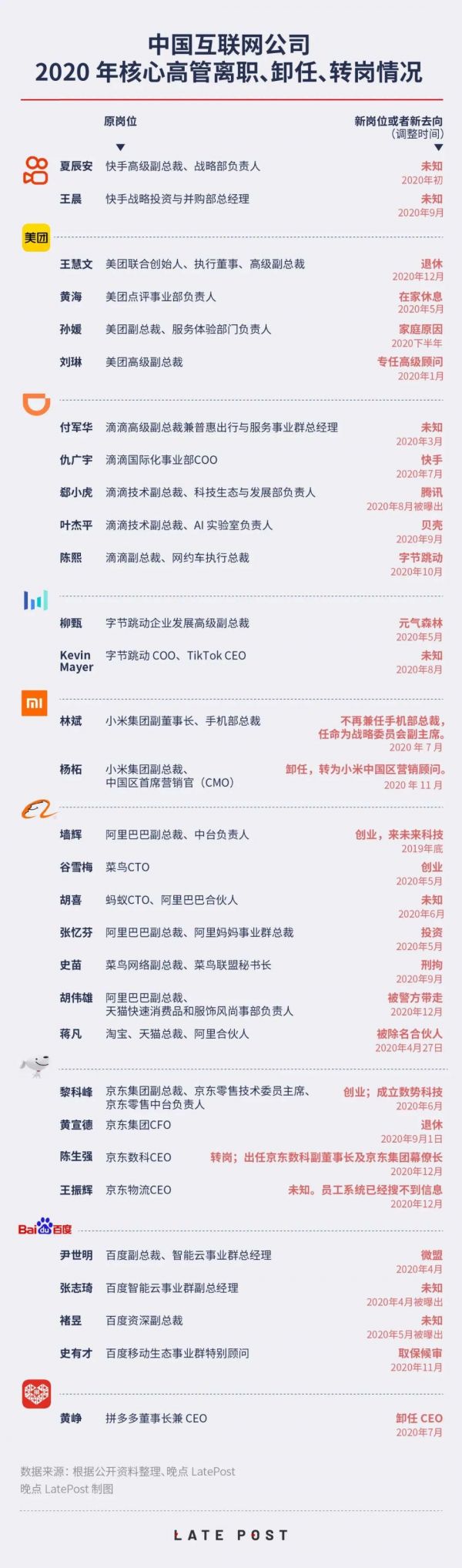 中国十大互联网公司核心管理层变动 2020 年盘点