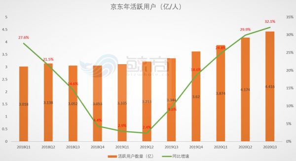 2020年京东Q3财报显示,京东用户数达到4.4亿,截至过去12个月,新增的1亿用户约有80%来自下沉市场。其引流入口主要是京喜APP及小程序。