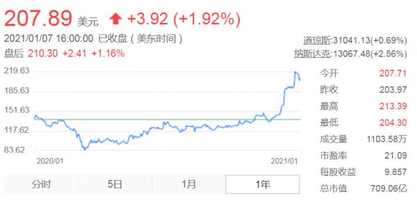 这笔奖金的原因,是百度终于走出了股价颓势,在2018年4月创下252.43美元/股的最高价后,经历了一路谷底,自2020年3月以来,股价开启回升之路,尤其12月迎来了暴涨,领涨知名中概股,市值摸高到740亿美元。