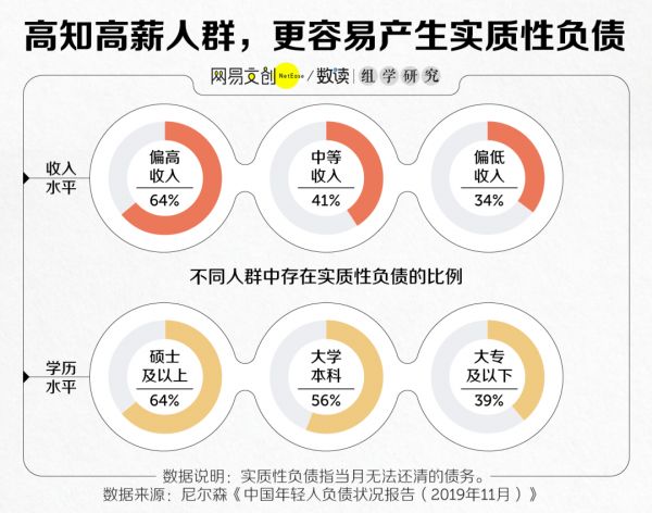 有意思的是,许多负债的年轻人都有一个共同特征:学历高,挣得也多。