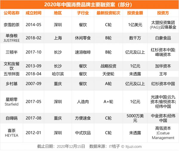 大量餐饮消费品牌在 2020 年拿到钱,一方面是企业需要资金度过难关,或者开拓市场;另一方面,借助直播、社交等新的品牌营销方式,新消费仍大有可为,也是投资人难以拒绝的刚需项目。